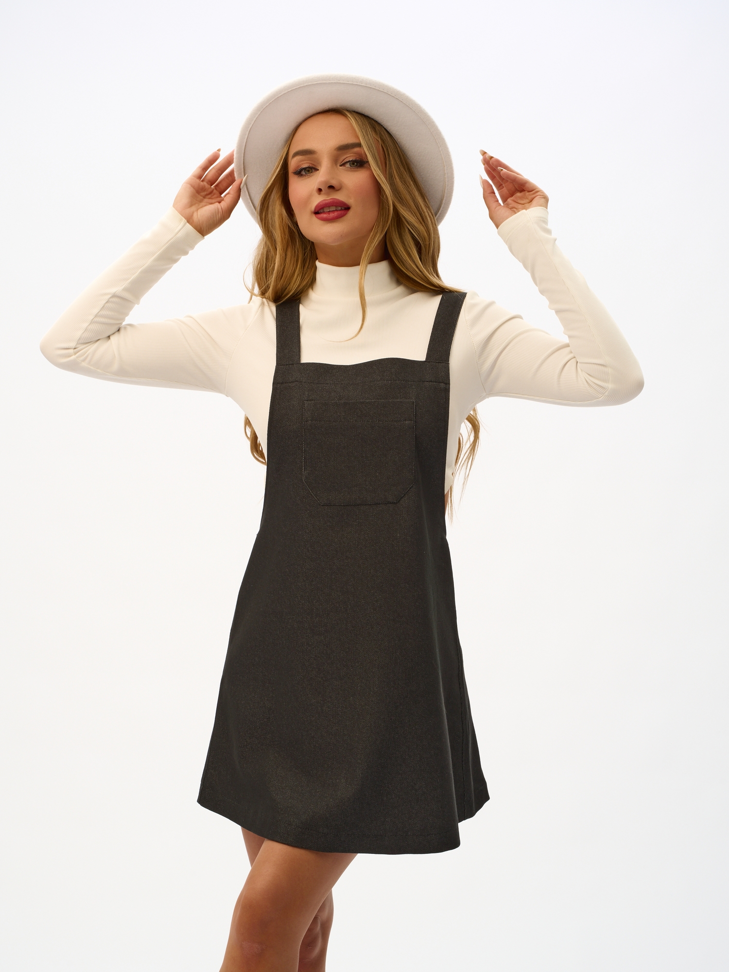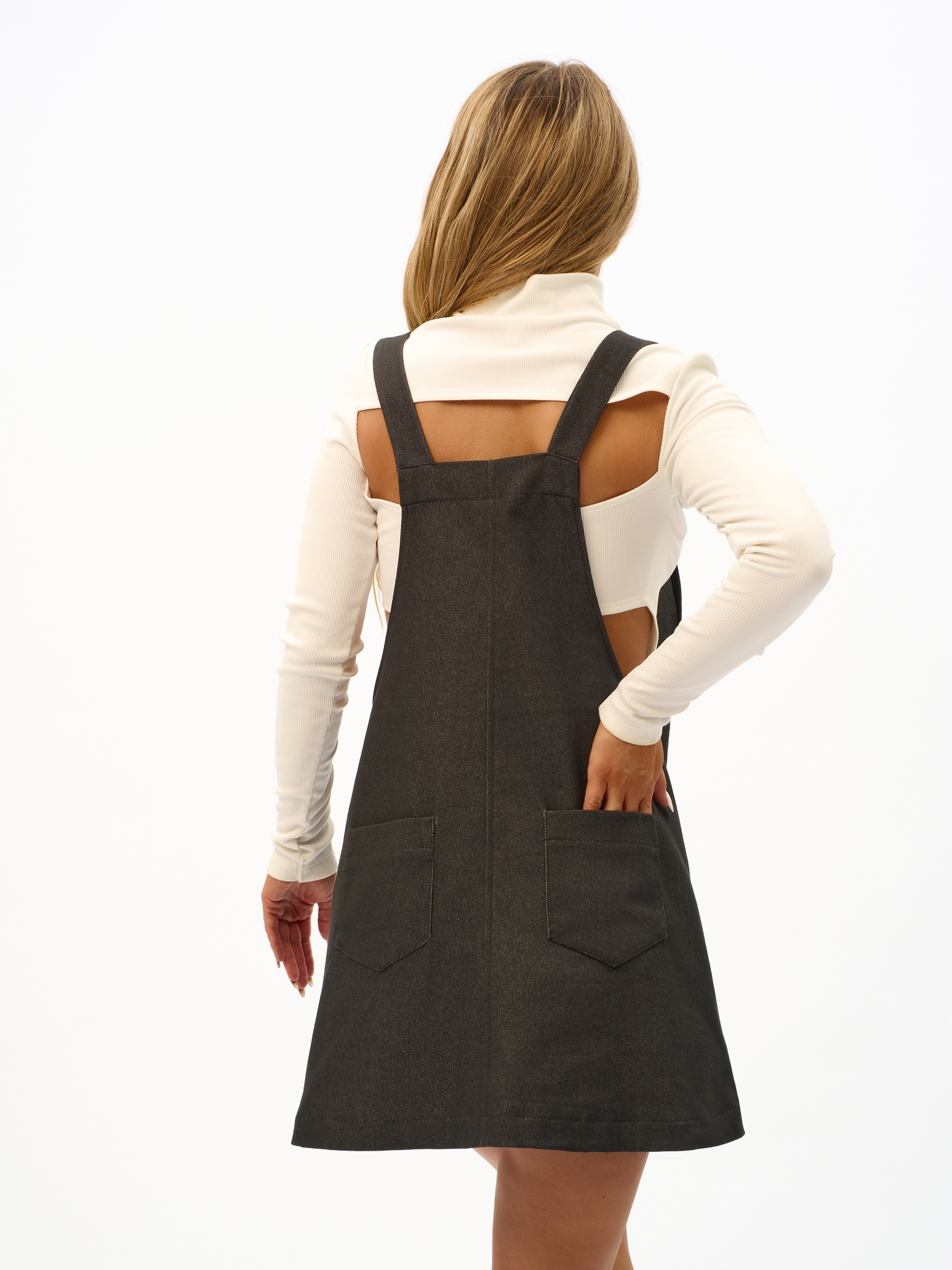 Сарафан выполнен из лёгкого денима цвета чёрный меланж